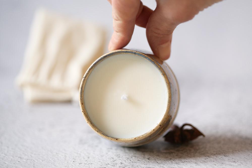 Composition naturelle : 0% CMR, 0% phtalate, 100% cire végétale de soja sans OGM, mèche en coton pur, parfum naturel de Grasse.