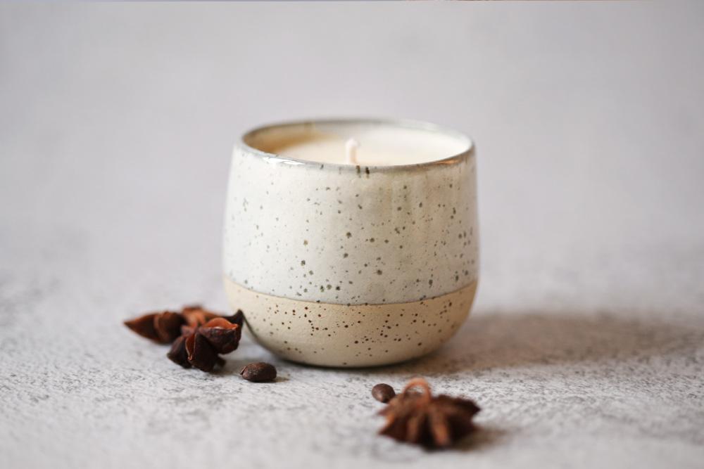 La bougie-tasse artisanale est un objet pensé en deux temps. D’abord, la douceur d’une bougie naturelle au parfum délicat & gourmand de Vanille spéculoos,